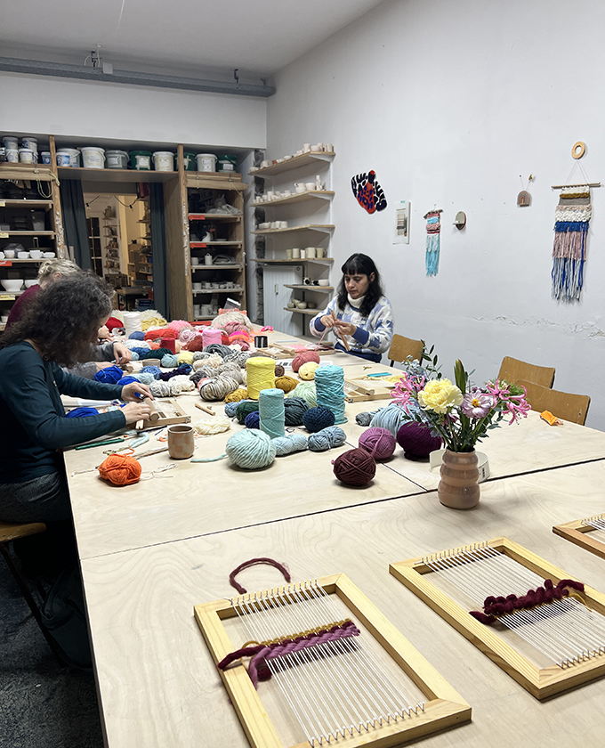 Sarah erklärt euch den Webrahmen und zeigt euch die einfachen Webbasics bis hin zu den effektvollen Webtechniken wie den Rya Knoten, Soumak und dem Pile-Weave, die ihr auf einem einfachen kleinen Webrahmen erlernen könnt. Nach der technischen Einführung webt jeder ein eigenes Wallhanging (ca.15×20 cm). Der Workshop eignet sich vor allem für kleinere Gruppen, Familien (ab 14 Jahre) und Freunde.