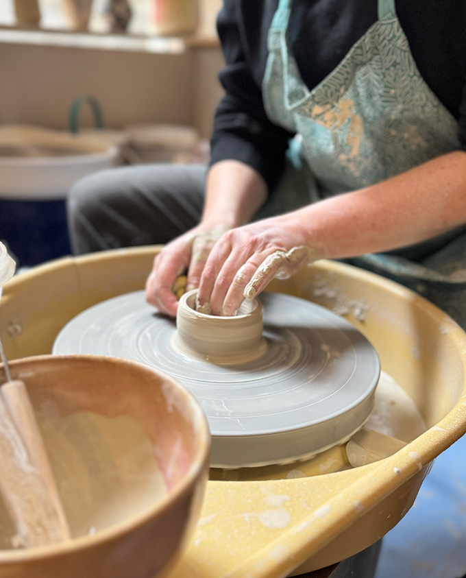 Beim ersten Termin zeige ich dir von der Pike auf wie man ein kleines Gefäß auf der elektrischen Töpferscheibe dreht.
