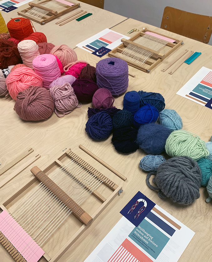 In diesem Workshop weben wir ein kleines dekoratives „Wallhanging“ aus verschiedenen Garnen und mit unterschiedlichen Techniken.
